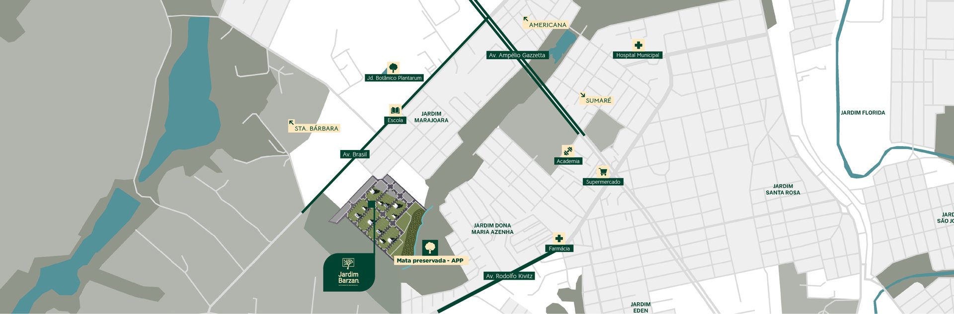 O Jardim Barzan está estratégicamente localizado próximo de uma área de preservação ambiental (APP), oferendo o melhor da natureza dentro da cidade. Além disso, o loteamento está ao lado das principais vias de acesso da região, dentre elas, a Avenida Ampélio Gazzetta/Rebouças, Avenida Brasil, Rodovia Luiz de Queiroz (SP-304).
